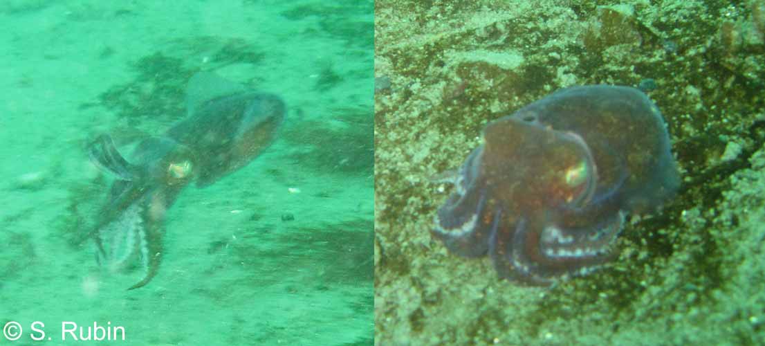 This small species can change color instantaneously and shoots a blob of ink as it shoots away from divers.