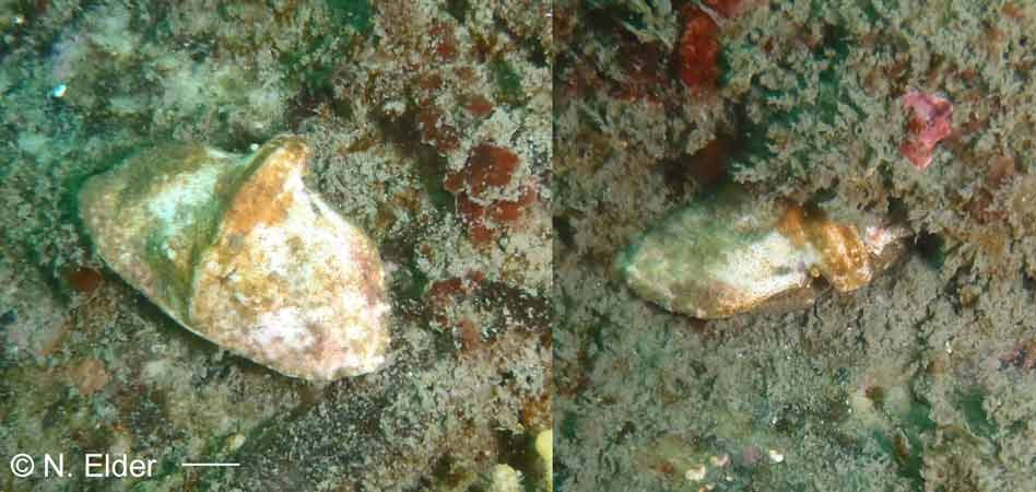 intertidal to 54m size to 6cm wide
