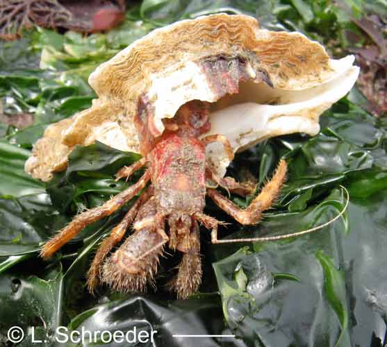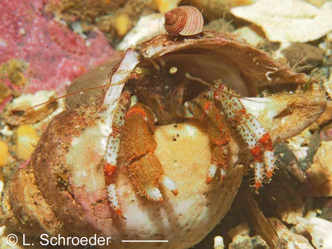 Discorsopagurus schmitti (Stevens, 1925)Tubeworm Hermitintertidal to 220m size to 7mm