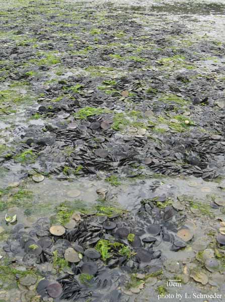 dead specimen                     live specimen           sand dollar bed