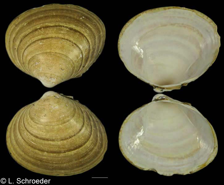 visible radial striations on the anterior and posterior ends.  These traits tend to disappear