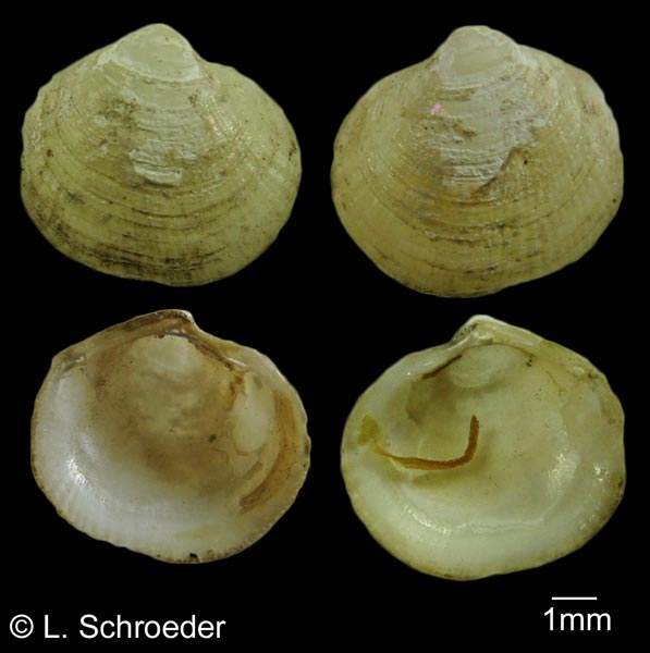 Parvilucina tenuisculpta (Carpenter, 1864)Fine-Lined Lucineintertidal to 300m northern Mexico to northern Alaska size to 15mmThis is infrequently found intertidally. It prefers mud with high organic content. The growth lines are
