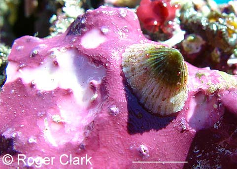 higher as it ages. These shells are rarely obscured by algae or other overgrowth. As with many limpets,