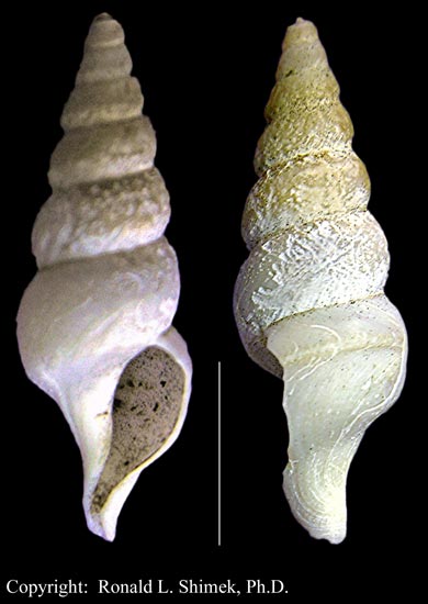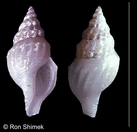 Propebela turricula (Montagu, 1803)Turriculate Lorasubtidal, 9-347m size to 15mmWashington to Bering Sea; Massachusetts to ArcticThis shell has weak axial ribs and fine spiral lines. It has squared shoulders.(synonyms - Oenopota turricula, Murex turricula)