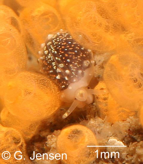is rarely found intertidally. The shell is light colored with a