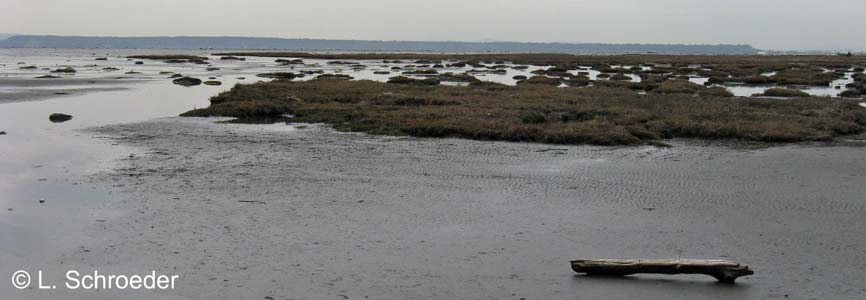 on the tide flat looking west back toward the shore
