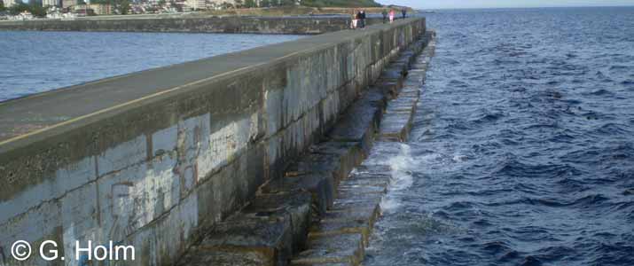 The breakwater is constructed of large rectangular blocks.